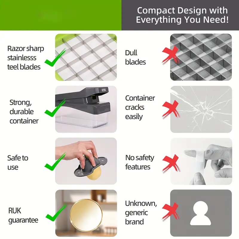 The Multi Functional Vegetable Chopper supports several kitchen preparation tasks in one setup