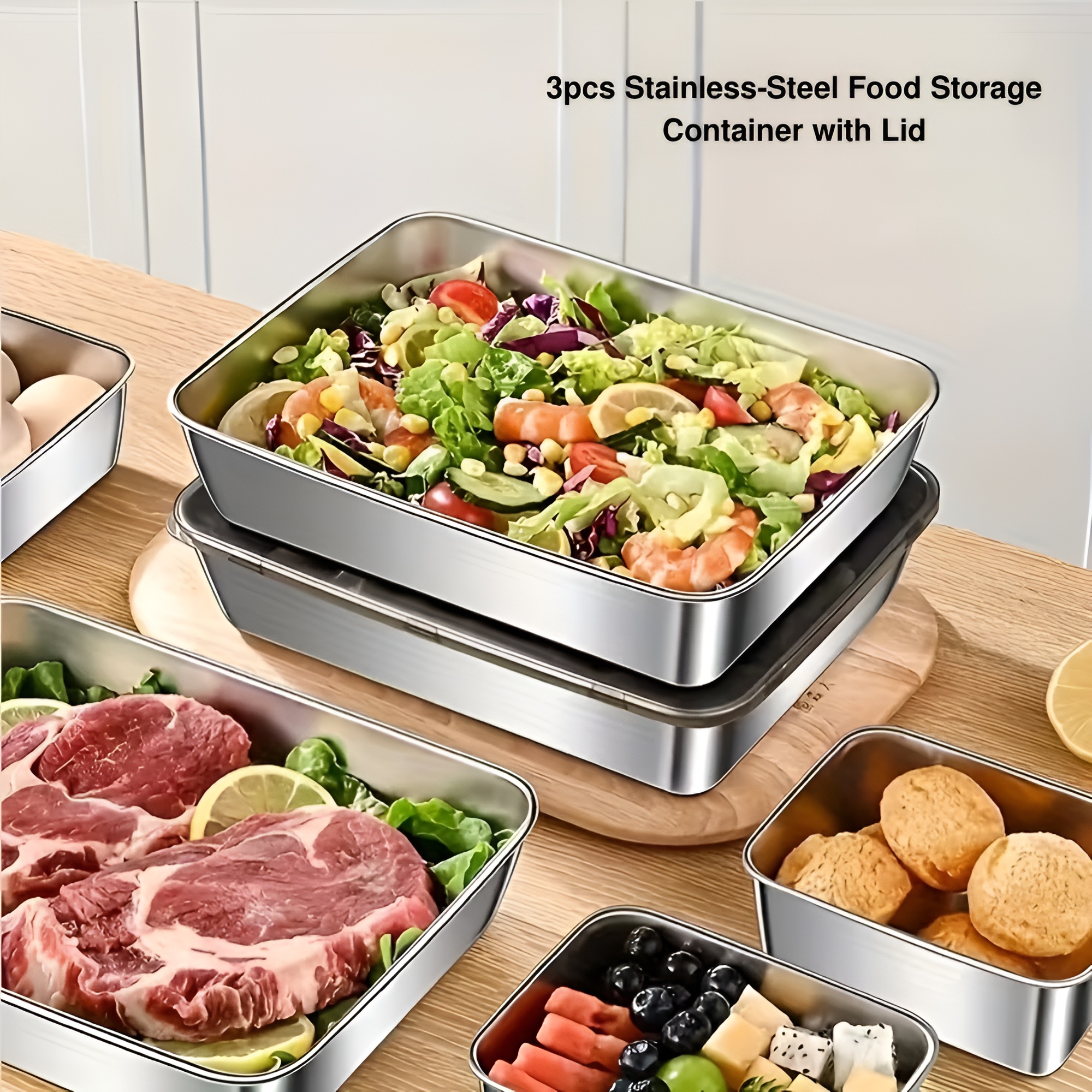 The 3 Piece Of Stainless Steel Food Storage Containers With Lids is designed to bring efficiency and organization to kitchen storage. With a stackable structure and safe lids, these containers help keep food items neatly arranged while saving valuable space. Suitable for a variety of uses, they support everyday food storage needs in both home and kitchen environments.