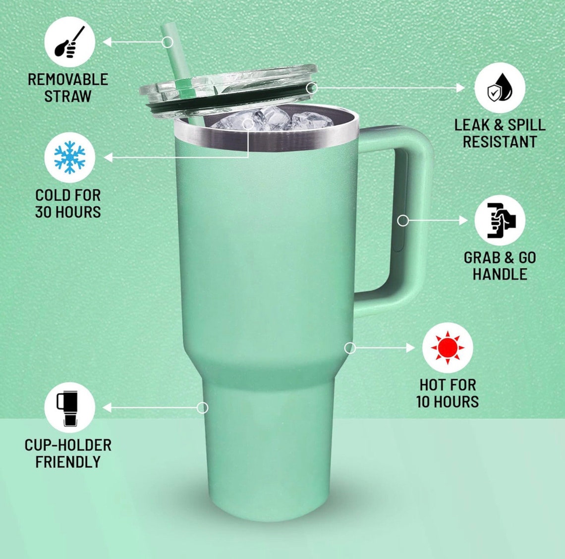 Perfect for daily hydration, whether you’re at work, at home, or on the go. This tumbler’s large capacity and spill-resistant lid make it convenient for carrying your favorite beverages throughout the day.