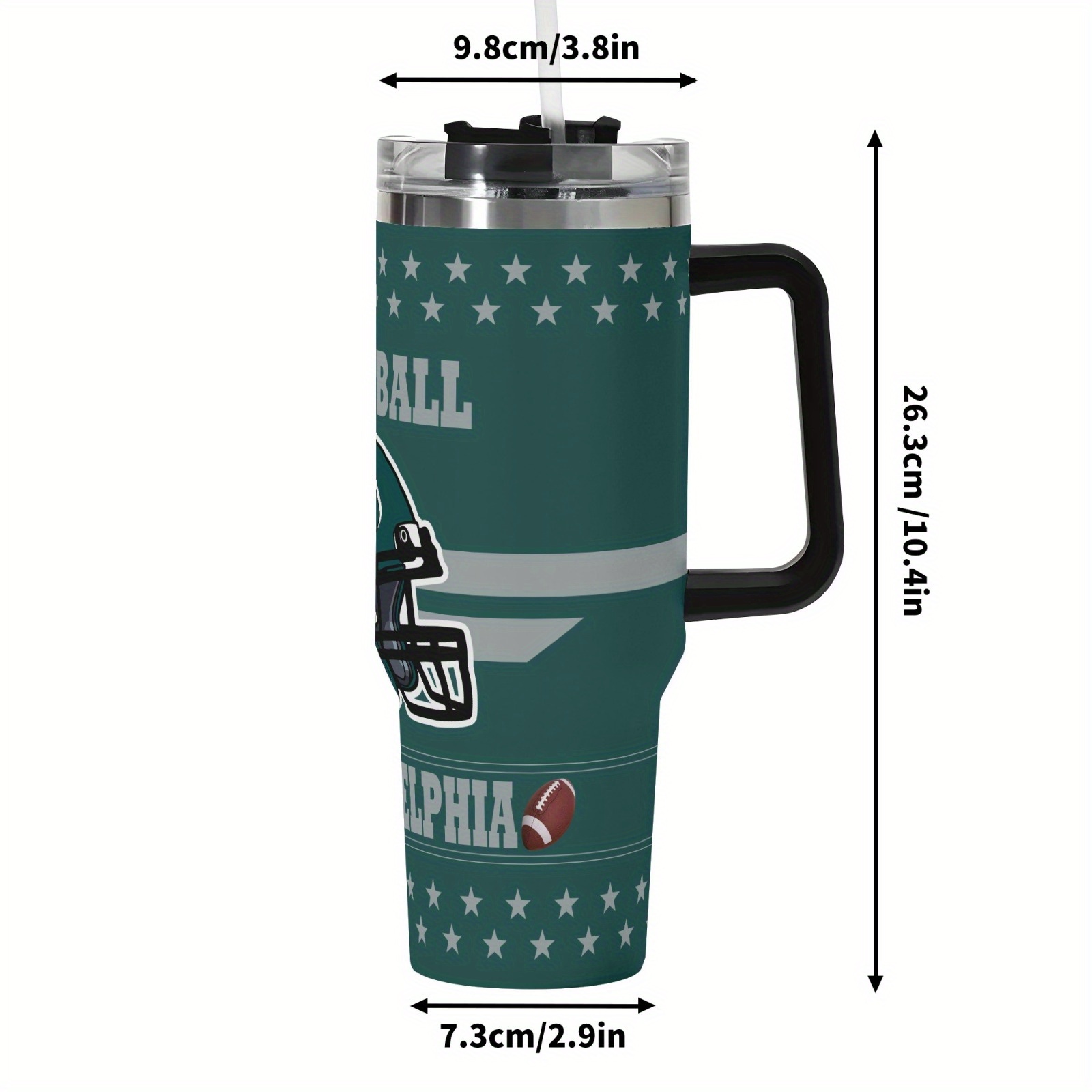 This football-themed tumbler features a Philadelphia-inspired sports design with a balanced visual style. The exterior displays football elements without excessive graphics. This allows the tumbler to fit into professional and casual environments. The design remains suitable for shared spaces such as offices or homes.