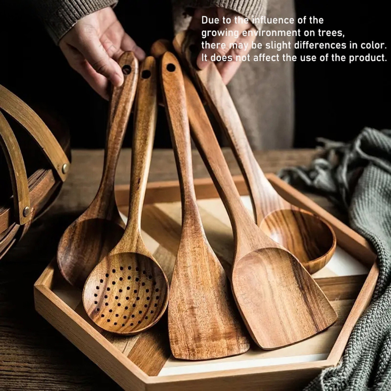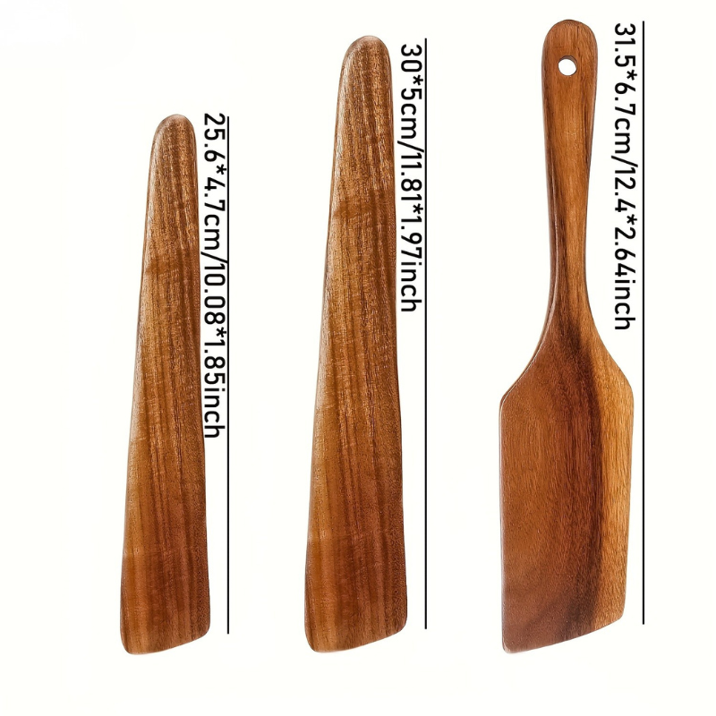 This wooden utensil set is a perfect combination of simplicity and performance. Designed for versatility, each tool serves a specific purpose, helping you handle a wide range of cooking tasks efficiently. The natural wood material provides a comfortable feel and resists heat, making it compatible for use with hot dishes. Its sturdy construction ensures long-lasting use, while the smooth edges prevent damage to delicate cookware surfaces. Easy to clean and maintain, these utensils are ideal for everyday use in busy kitchens. Whether you are an experienced cook or just starting, this set offers reliable performance and ease of use. With its timeless design and practical benefits, it enhances both the look and functionality of your kitchen setup.