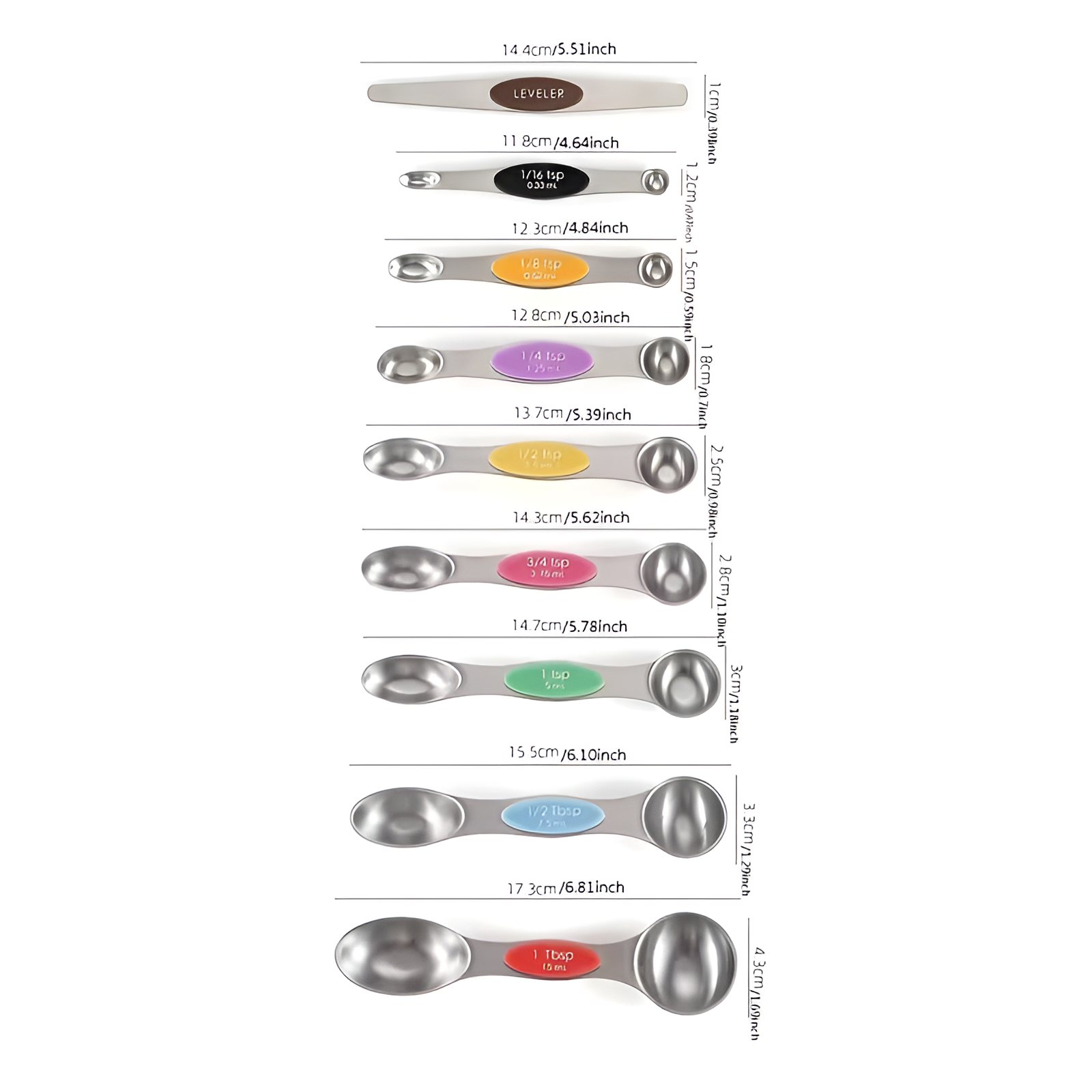 This measuring spoon set combines thoughtful design with everyday functionality. The dual-sided structure allows easy access to different container types, while the magnetic feature keeps the set together for simple storage. The included leveler supports consistent measurement, making it a reliable addition to kitchen essentials.