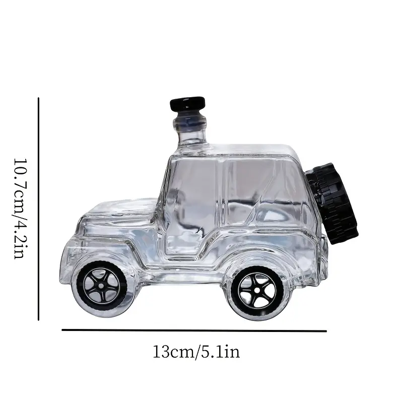 The Car Shaped Glass Whiskey and Wine Decanter introduces a way to showcase and store spirits. Its shaped form and transparency make it suitable for bar arrangements, shelf displays, or gift presentations.