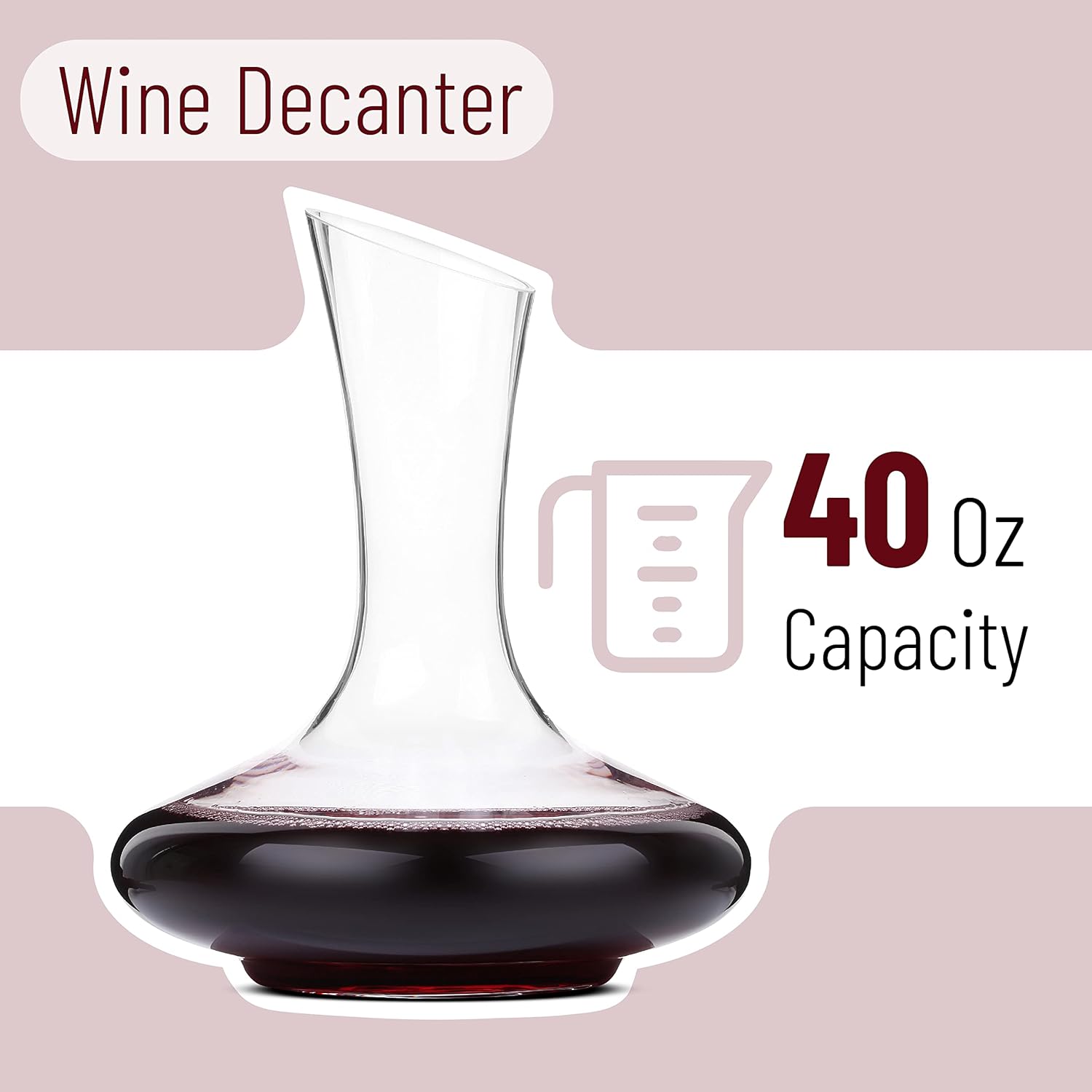 Holds up to 40oz (1200ml), accommodating a standard 750ml bottle with ample room for aeration.