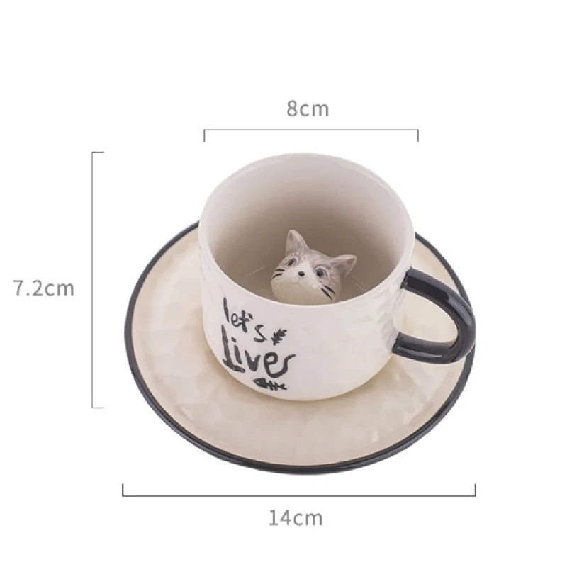 The Ceramic Kitten Coffee Mug blends utility with creative craftsmanship. Its porcelain structure, smooth glazed finish, and sculpted kitten inside create a distinctive experience for beverage enthusiasts and collectors alike. The coordinated saucer enhances balance and presentation, making it suitable for a variety of settings—homes, cafés, studios, or gift occasions.