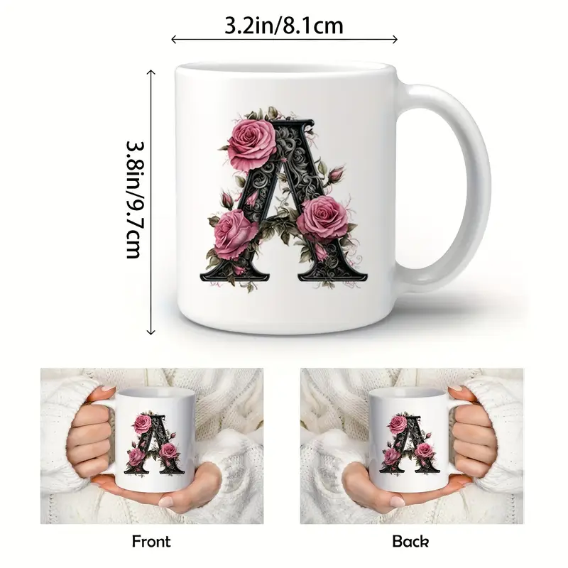 The Floral Alphabet Letter Printed Ceramic Coffee Mug combines personal expression with thoughtful craftsmanship. Each mug displays a detailed floral letter from A to Z, allowing every user to choose an initial that feels personal or meaningful. Whether you enjoy your morning coffee or afternoon tea, this mug adds a sense of personality to daily routines.