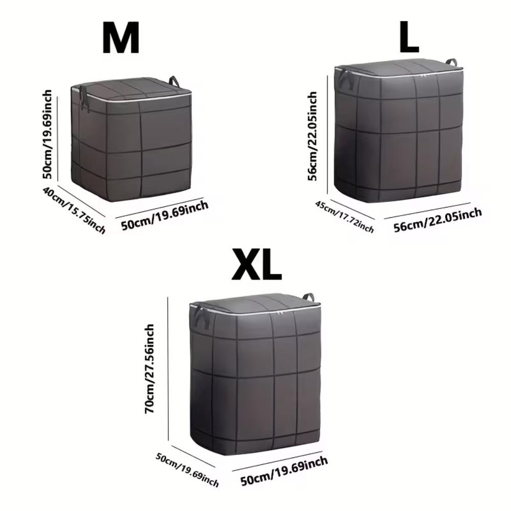 This storage bag offers a simple way to organize clothing and household items. The foldable design allows it to be stored easily when not needed, while the large capacity supports storing bulky items like quilts. Handles make it convenient to carry, and the structured shape helps maintain neat storage spaces. Suitable for both home and travel use.