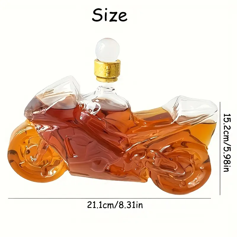The Motorcycle Shaped Whiskey Decanter combines creativity and utility, offering a distinctive alternative to traditional decanters. Its motorcycle-inspired design makes it a decorative highlight, while its functionality ensures it serves whiskey, bourbon, or scotch effectively.
