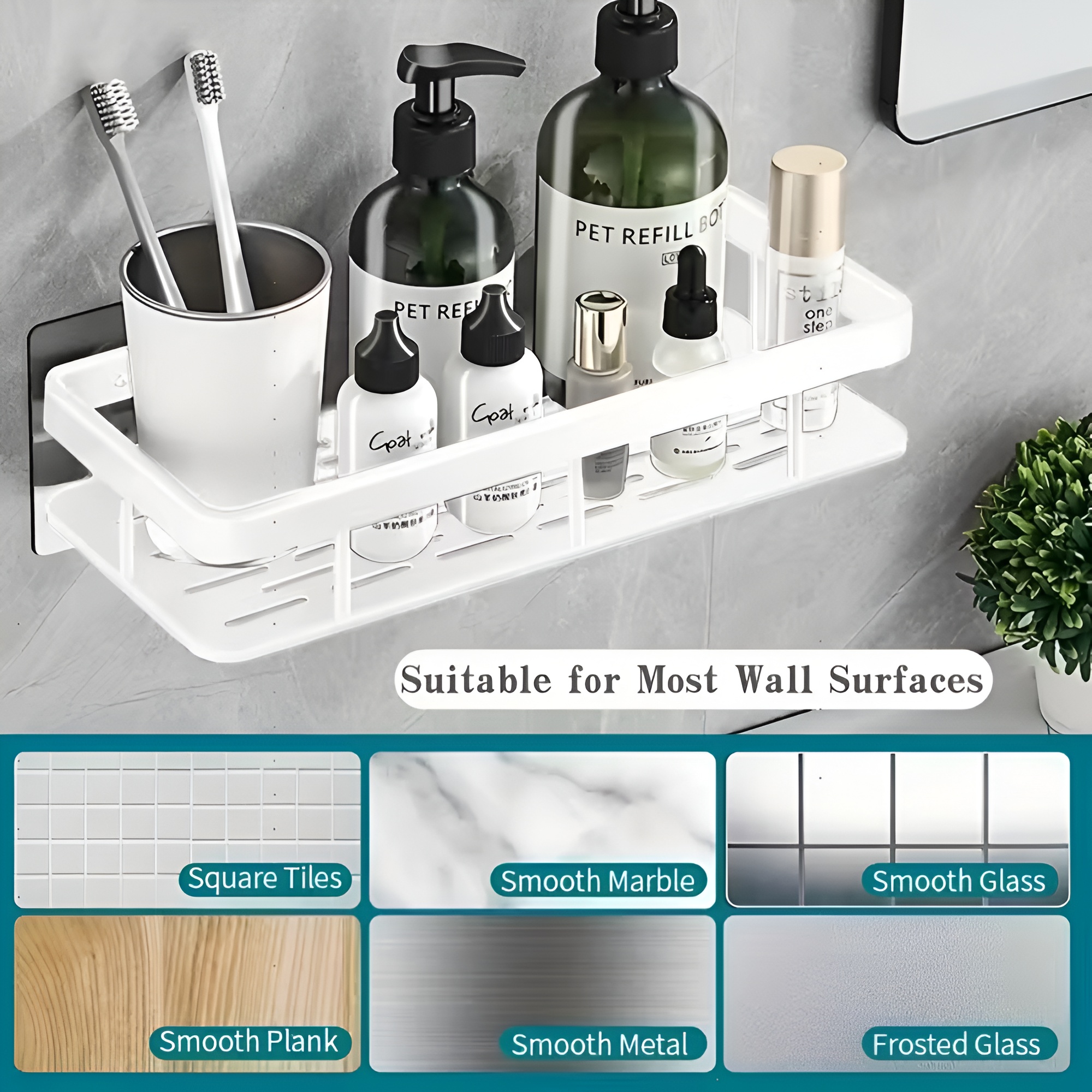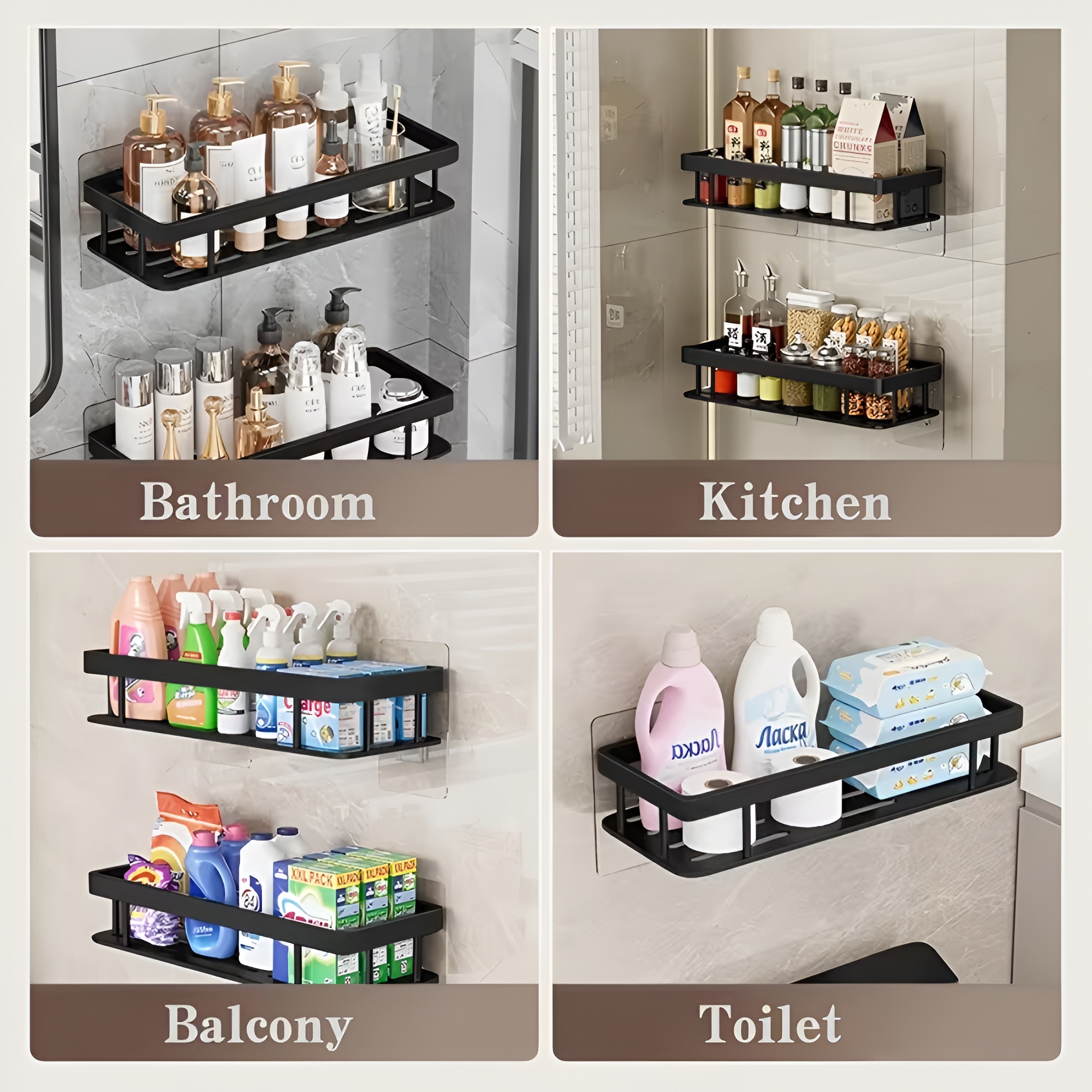 The No Drill Wall Shelf For Bathroom And Kitchen Storage is designed to bring organization and efficiency to bathroom and kitchen spaces. With a simple installation method, it eliminates the need for drilling while offering a guarded and stable setup. Its clean design and functional layout make it suitable for storing a variety of items, helping maintain a tidy and organized environment.