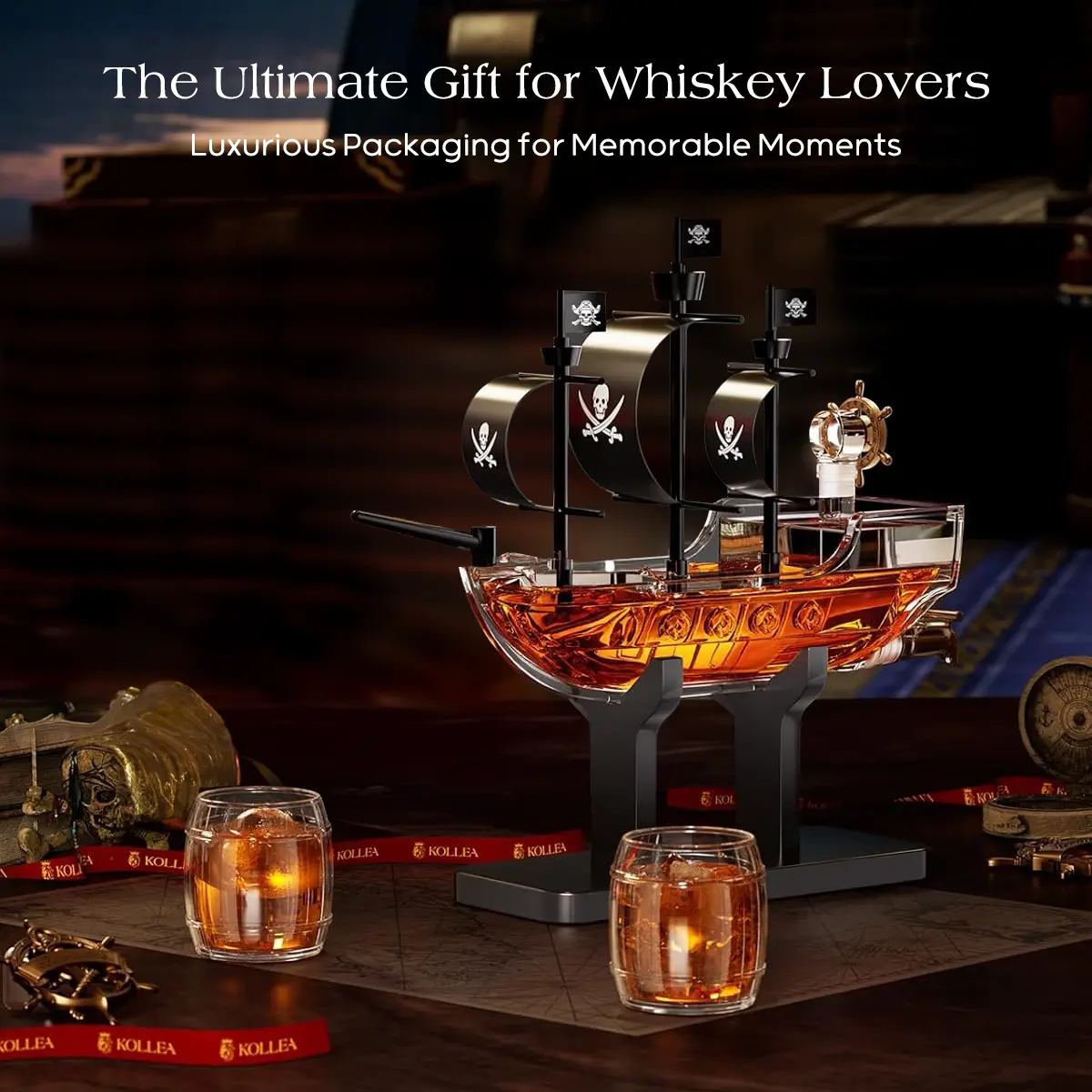 The Vintage Sailing Ship Decanter set combines maritime artistry with beverage service functionality. Its sculpted vessel design, generous capacity, and stable stand make it suitable for display and entertaining alike.